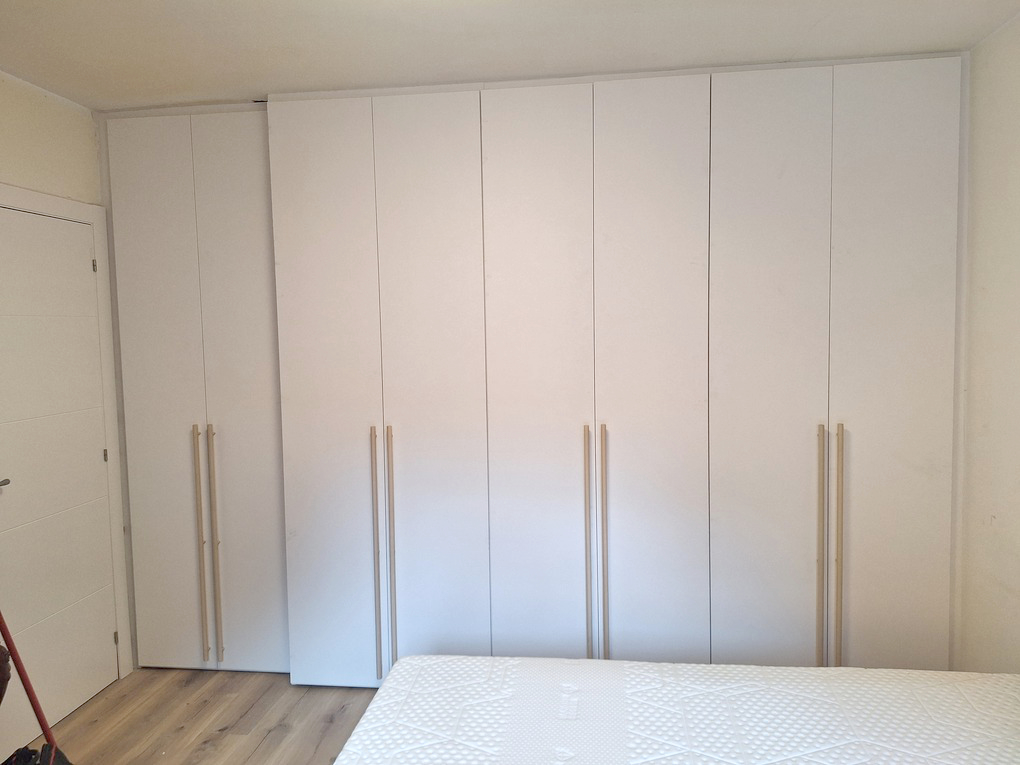 En este proyecto diseñamos un armario a medida adaptado a una necesidad muy concreta: crear un mueble de almacenaje amplio y práctico en una habitación con un paso estrecho. La clave era que el armario no interfiriera con la apertura de la puerta ni redujera la movilidad dentro de la estancia. La solución fue ajustar el fondo de los módulos, diseñando una estructura que combina estética, funcionalidad y un aprovechamiento máximo del espacio.