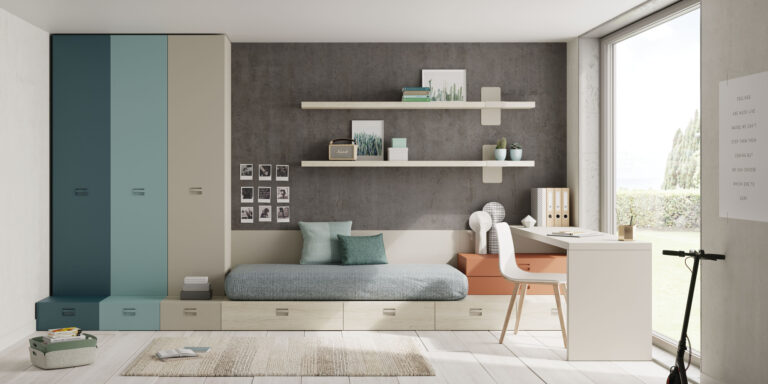 Sabemos que los jóvenes necesitan un espacio para estudiar y explorar sus pasiones. Por eso, nuestros dormitorios juveniles también incluyen zonas de estudio diseñadas para fomentar la concentración y la creatividad.