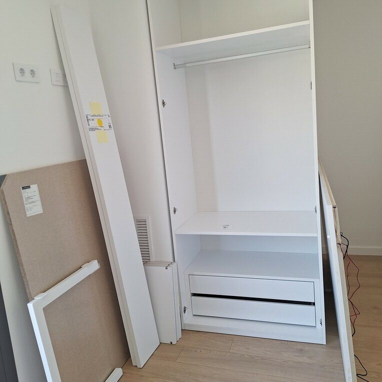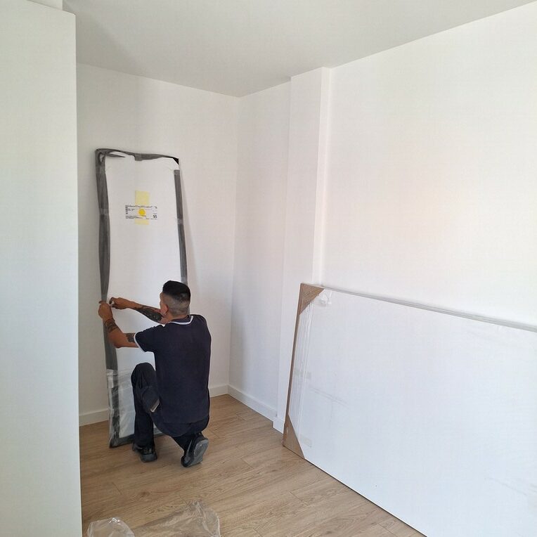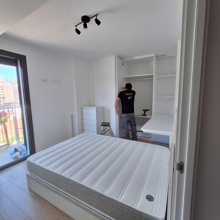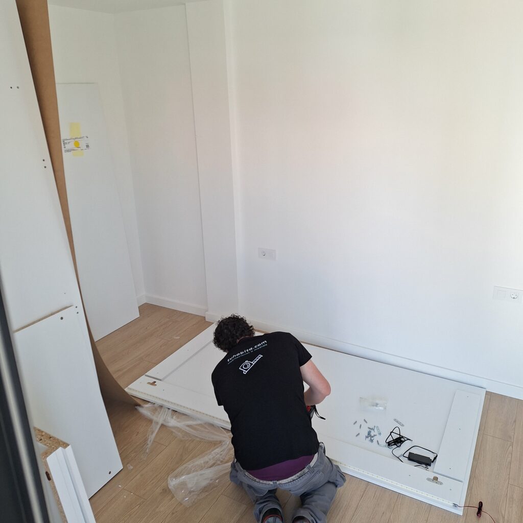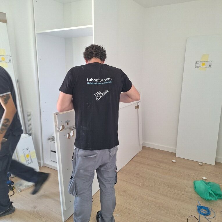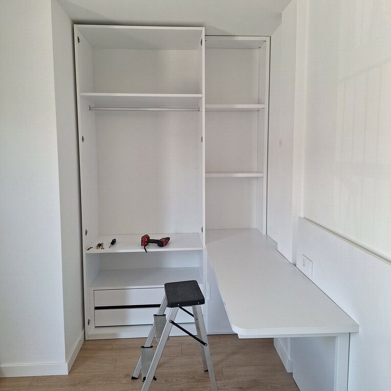 - Armario a medida: optimiza el espacio y mantiene la estética del conjunto.
