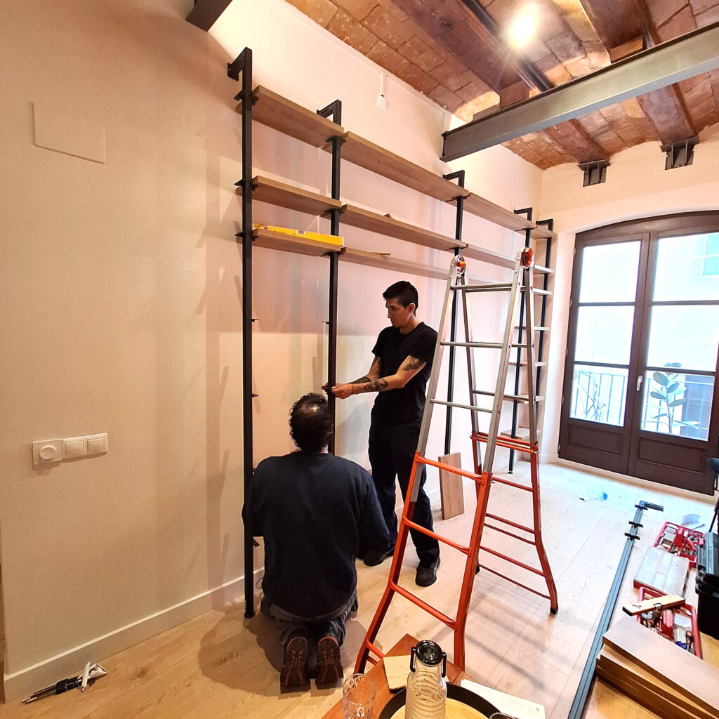 Nos encantan los retos, y este proyecto en una casa antigua reformada en el centro de Barcelona es un ejemplo perfecto. El objetivo era crear una librería espectacular que se fusionara con el diseño de la obra, donde los materiales nobles como la madera y el metal son los protagonistas.